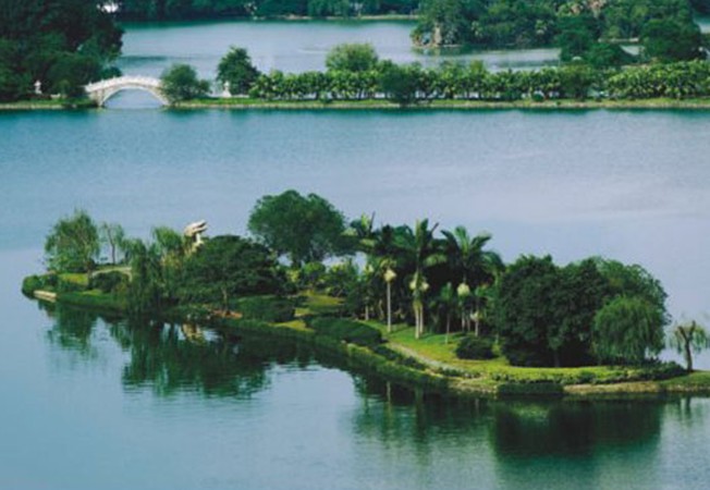 關于湖東東門塘的化容橋,有一個美麗的傳說。相傳有一位其貌不揚的姑娘,在桂山采桂花為生,一天她進城賣桂花藥,正好碰上皇帝派人在湖邊搭臺選妃,觀看的百姓人山人海,姑娘也擠進人群翹首觀望,誰知一不小心被擠落水里。奇怪的是當她被救起來后,變得如出水芙蓉,艷驚眾人,于是當場被選入皇宮。此后,湖上的這座橋就被叫作化容橋(也稱化龍橋)。當然這只是傳說,但也反映了河源的水水質之好,河源人的愛美之心自古有之。化龍橋南是曲折有致的飛鸞橋,橋上花草如茵。此橋的特別之處在于并不貫通兩岸,游人走到橋尾,正好身處湖心,坐在亭中,享受著柔和的微風,看湖水泛起陣陣漣漪,湖岸上的熱鬧就在眼中,卻并不鬧耳,很容易生出一種超然物外的感覺。化容橋西側原有兩棵古榕,現(xiàn)在只剩下一棵。另一棵本有兩枝,版權所有山東聊城聊之旅國際旅行社有限公司,轉載必究!在朱德委員長逝世前無緣無故坍裂了一枝,而另一枝也在毛主席逝世前無緣無故連根倒塌了,不知道這是巧合還是天意。
