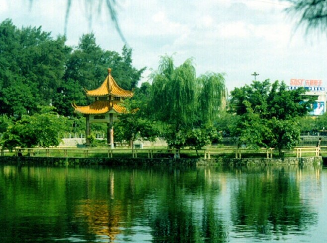 鱷湖共有12公頃的水面。雖然比不上大家閨秀般的杭州西湖,也算得上小家碧玉了;雖然沒有杭州西湖深厚的歷史文化沉積,卻也處處閃耀著客家文化的亮點。鱷湖青曲”是河源老八景之一,幾經整治,鱷湖現(xiàn)在更加清波蕩漾,湖四周花香樹茂,垂柳夾岸,成為商業(yè)旺區(qū)一道旖旎的風景。