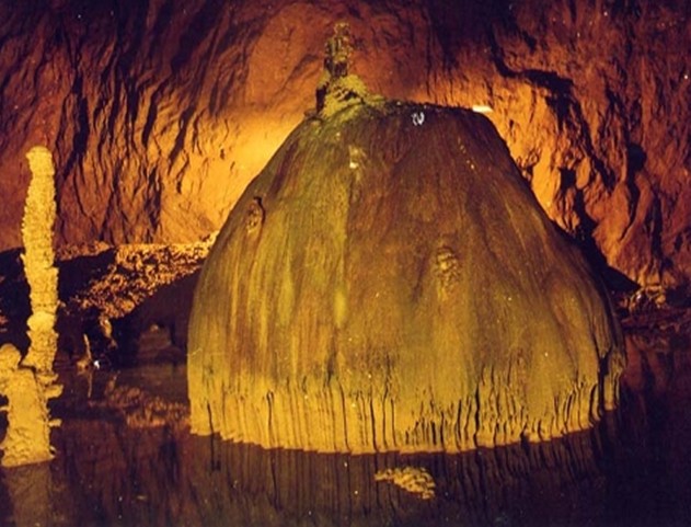百魔洞位于巴馬縣甲篆鄉(xiāng),1987年,當中國和英國的巖溶地質專家踏進了百魔洞,進行了聯合考察后,一致認為:該洞集天下巖洞之美于一身。洞的平均高度為80米,寬70米,主游路程4000多米,盤陽河從百魔洞下流過。百魔洞的獨到之處還在于它的鐘乳石高大氣派;據測量,最高的石筍為39米、直徑為10米。景點設有:孔雀迎賓、良田萬頃、金山猴王、杜甫吟詩” 該洞加上洞上洞、洞內洞之歧路,游程可達萬米。與相通的感歲洞,鄰近的柳羊洞和五仁洞組成龐大的洞群。此洞分為4個大殿堂,輝煌瑰麗,多姿多彩,讓人看了留連忘返。其中最為壯觀的是那個100多米高,幾百米寬、1000多米長的大殿堂內,幾十個70~80米高、3~5米直徑的鐘乳石柱,構成龐大的石塔群,挺拔高聳,雄偉壯麗,讓人驚嘆不已。加上洞中霧氣繚繞,變幻無窮,更使這個巍巍景觀顯得詭秘多姿。這些巨大的鐘乳石塔,是經過幾億年巖溶發(fā)育的結晶,實屬“天下之最”。
