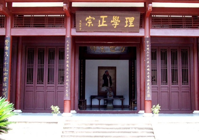 聯曰:“接伊洛之淵源,開閩海之鄒魯”,聯文說明朱熹的理學思想已成為我國哲學發展史上的一個承上啟下的重要階段。這副楹聯懸于大門顯得端莊典雅,醒目點題。大殿前有一副“致廣大而盡精微,極高明而道中庸”的對聯,表述了朱熹的哲學體系博大精深和儒家人生處世的規范。