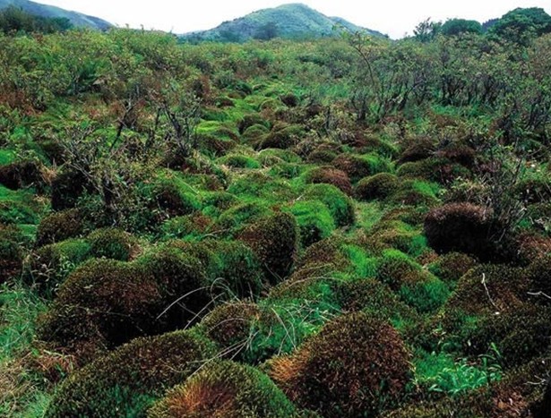 滕古田自然保護(hù)區(qū)還有許多別處難以見(jiàn)到的奇觀(guān),如古樹(shù)的大板根現(xiàn)象,一棵三人才能合抱的古樹(shù)生出五支刀一樣的板根露出地面,幾個(gè)人坐在板根之間誰(shuí)也看不著誰(shuí),這就是亞熱帶森林特有的景觀(guān)。在這里,還能夠欣賞到亞熱帶地區(qū)罕見(jiàn)的成片紅皮糙果茶純林,樹(shù)干挺拔崔嵬,葉片寬大蔥郁,顯示出一種拙樸、雄壯的原始之美。在行至古田的山路上,還有一種長(zhǎng)在大石旁邊名叫“過(guò)崗龍”的藤,藤的頭部直徑有70多厘米,三支分藤匍匐攀沿于兩座山頭,總長(zhǎng)達(dá)400多米。古田保護(hù)區(qū)還有水流飛簾倒卷的水簾下瀑布、頭沉出水處的沉水河等頗有欣賞價(jià)值的自然景觀(guān)。