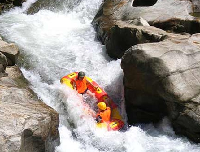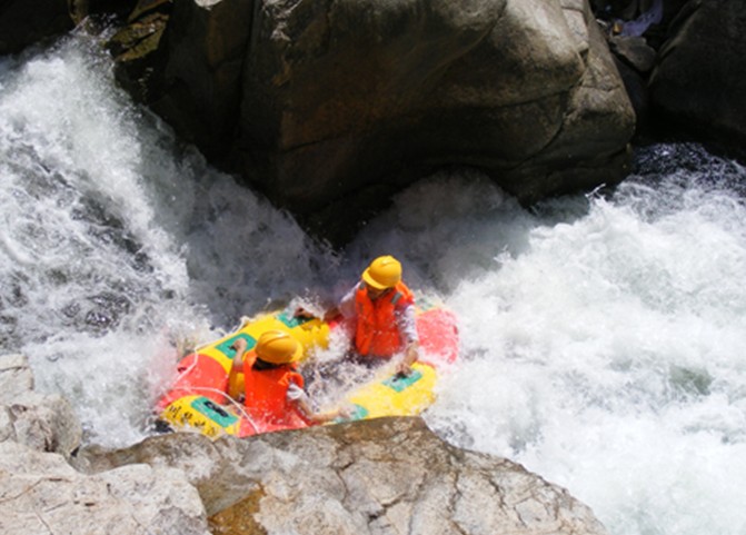 下險灘、飛越激浪,有驚無險;過深潭、追波逐浪,聽鳥觀魚。身臨其境既可領(lǐng)略旖旎 的自然風(fēng)光,又可擁抱大自然的無限樂趣。山在霧中,人在畫中,恰似一幅情趣盎然的精品畫。在激流的撞擊下,橡皮艇如離弦之箭,向前沖刺。險灘、礁石撲面而來,幾乎要把橡皮艇掀翻,卻有驚無險。橡皮艇又義無反顧地駛?cè)肫骄彽乃吨新龡l斯理地蕩漾。心靈深處得到一次酣暢淋漓的釋放。