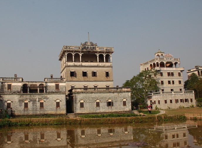 建筑風格方面,很多帶有外國的建筑特色,有柱廊式、平臺式、城堡式的,也有混合式的。這些碉樓。有的是根據建樓者從外國帶回的圖紙興建的。