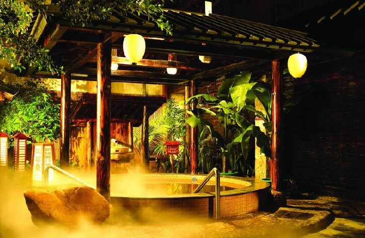 御溫泉內(nèi)按不同需要和功能分為靈芝湯、鮮人參湯、當歸湯、薄荷湯、艾葉、三丫苦湯、蘆薈湯等池子,客人還可享用各種特色溫泉池、桑拿、蒸汽浴、健身房、香薰屋及飲品。明月松間,清泉石上,樹影婆娑,氤氳香彌……每一個走進御溫泉的人都仿佛走入一片久違的山水田園。御溫泉設(shè)有天然溫泉華興池、花草溫泉、木溫泉、咖啡溫泉、酒溫泉、瀑布溫泉、音波噴射溫泉、石溫泉,以及成人、兒童溫泉游泳池和設(shè)備齊全豪華的健身中心等十余種不同類型的溫泉浴服務(wù)。御溫泉建有10多套獨立室內(nèi)溫泉浴池的園林式貴賓休息房。還配有大型蒸氣浴和桑拿浴室及40多間標準按摩、推拿室,供游客浴后接受保健按摩,增強泉浴的療效。