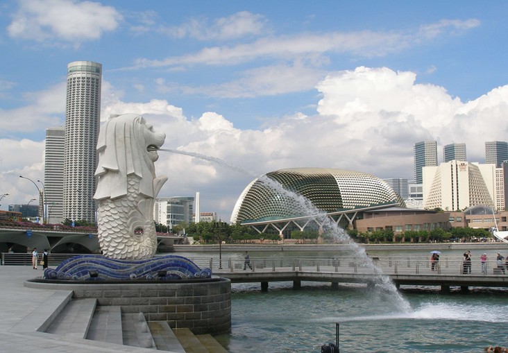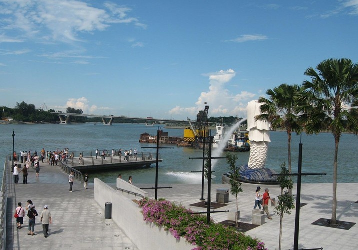魚尾獅是一種虛構(gòu)的魚身獅頭的動物。它在1964年由時任Van Kleef 水族館館長的Fraser Brunner先生所設(shè)計的。兩年后被新加坡旅游局采用作為標志,一直沿用到1997年。該塑像高8.6米,重70噸,獅子口中噴出一股清水,是由雕刻家,林浪新先生和他的兩個孩子于1972年共同雕塑的,另一座高2米的小型魚尾獅雕像也在同一時期完成。獅頭魚身坐立在水波上的魚尾獅,其設(shè)計概念是將現(xiàn)實和傳說合二為一:獅頭代表傳說中的“獅城”,至于塑像的魚尾造型,浮泳于層層海浪間,既代表新加坡從漁港變成商港的特性,同時也象征著我們當年飄洋過海,南來謀生求存,刻苦耐勞的祖祖輩輩們。1972年9月15日,當時擔任新加坡總理的李光耀為魚尾獅塑像主持開幕,大小魚尾獅最初建立在離現(xiàn)址120米的安德遜橋邊的魚尾獅公園。他在致詞時表示,希望魚尾獅能成為新加坡的象征,就如艾菲爾塔是巴黎的象征一樣。為了紀念這項盛事,制定了一塊銅匾,銅匾上刻有獻詞:“魚尾獅是新加坡迎賓好客的象徵”。一言九鼎,隨后這數(shù)十年里,魚尾獅成功打造出新加坡的國際形象。隨著國家政策大力鼓勵發(fā)展旅游業(yè),以及旅游局雄心萬丈的促銷策略,新加坡作為一個旅游勝地的知名度也打響起來,魚尾獅塑像更成為吸引外來游客拍攝“到此一游”照片的最佳鏡頭。由于具有顯著的表征性,這個原屬商用性質(zhì)的標志,因而從旅游的層次,逐漸擴大,提升至無所不在的各個領(lǐng)域和層面,甚至最終被圖騰化和神圣化起來。這原本是美事一樁,造型趣味而極富創(chuàng)意的魚尾獅,全身潔白、雙眼含笑毛發(fā)豐美、鱗片鮮活。白色水花日夜不停地從獅口噴灑而出,流向河水、奔向大海,為新加坡河畔一帶的景致營造了美好的氣氛。