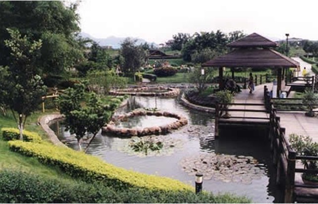 獨具東南亞園林風格的露天溫泉區,近40余個特色各異的溫泉池錯落有致地分布在綠樹林蔭之中,擁有目前全國規模至大的2500平方米人造海浪常溫池,僅10℃的冰泉、82℃的煮蛋池、小海豚兒童歡樂池、獨特華夏五行文化之(金、木、水、火、土)五龍洞泉、飄香四溢的玫瑰池、晶瑩剔透的水晶宮、各種功效的藥浴池、特殊療效的天然石板溫泉熱炕……。在浸泡溫泉之余,寬敞舒適的溫泉休息廳免費獻上精美小吃、咖啡、奶茶、飲料、水果等飲品。