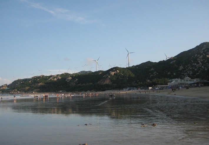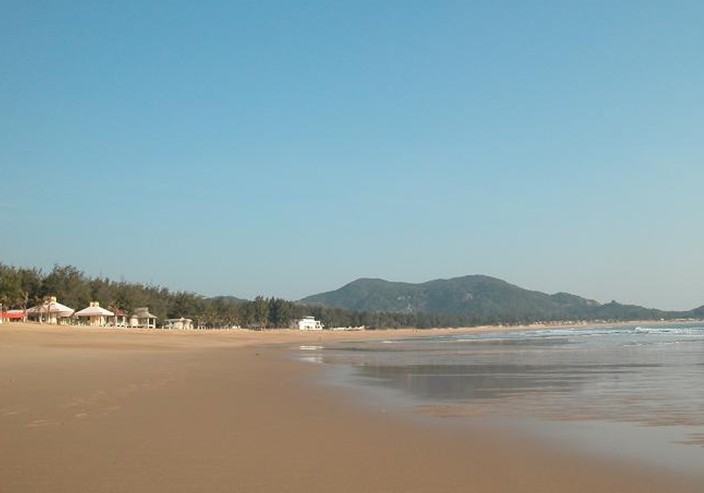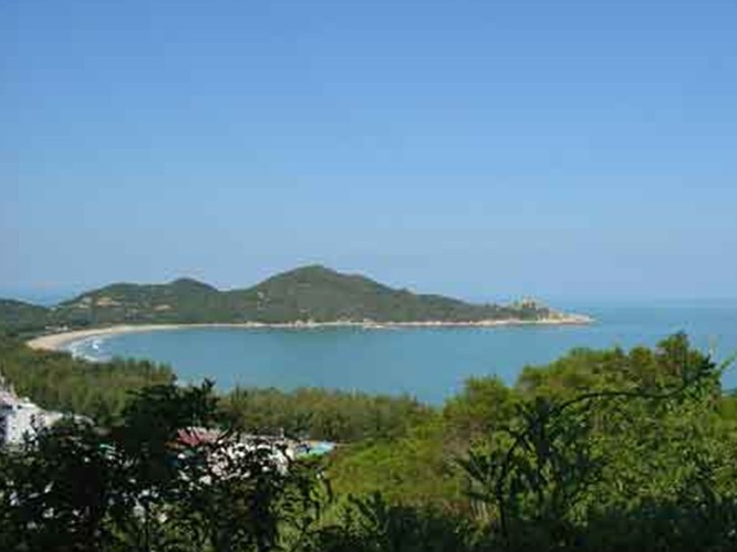 青澳灣,灣口朝東南,灣腹很深,灣弧達(dá)2.9公里。嶺頭新建的一座涼亭,名曰:“覽月亭”。成排成片的木麻黃樹循著孤形沙灘蔓延開去。海浪、白沙、林帶以及林中新筑的各式亭臺(tái)樓閣,構(gòu)成了色彩斑斕的海市蜃樓圖景。據(jù)說(shuō)沙灘長(zhǎng)達(dá)2.4公里,沙帶寬近百米。沙灘向海延伸坡度平緩,數(shù)十米內(nèi)海水僅米余深,是海浴的理想場(chǎng)所,被譽(yù)為“泳者天池”,是廣東省僅有的兩個(gè)A級(jí)海濱浴場(chǎng)之一。