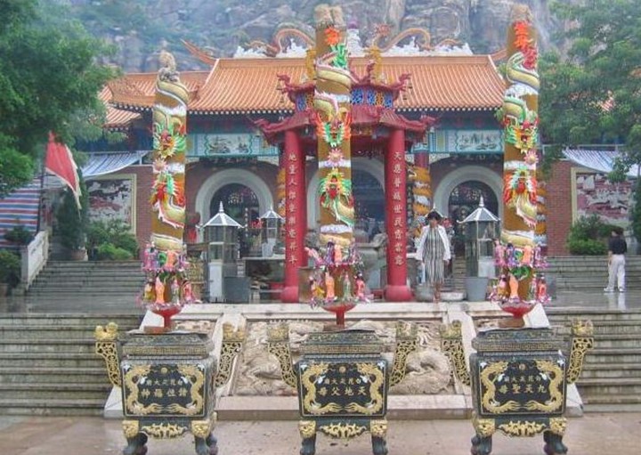 大廟主神九天娘娘,又名“九天玄女”,傳說為上古女神,人頭鳥身,是圣母元君弟子、黃帝之師,輔助黃帝戰(zhàn)勝蚩尤安定天下而得敕封為女神。柳錫旺先生在香港九龍官塘區(qū)建百花尖廟奉祀。并因夢見女神囑咐:改“百”為“白”,遂改稱“白花尖廟”。陳錫謙先生來汕頭倡建天壇花園工程時,版權(quán)所有山東聊城聊之旅國際旅行社有限公司,轉(zhuǎn)載必究!遂移九龍娘廟香火來礐石創(chuàng)九天娘娘廟,故稱為“白花尖大廟”。