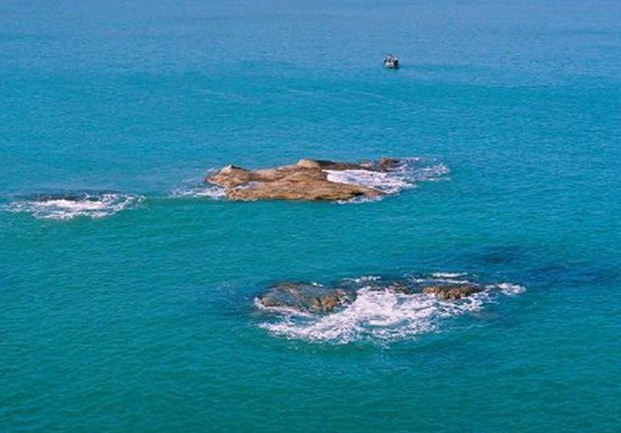 紅海灣與碣石灣交接處突入海的一個(gè)半島,素稱“粵東麒麟角”。又稱巖島,因?yàn)樗怯山笌r構(gòu)成的。海浪沖擊與自然風(fēng)化的鬼斧神工,造就了奇形怪狀、橫豎各異的礁巖,巨浪撲來(lái),激起沖天浪柱,海浪從空跌落,化作浪花朵朵,猶如“卷起千堆雪”。面對(duì)這浩瀚碧海,目睹這潮來(lái)潮去、排浪巨變,不禁感到豁然開朗,豪氣萬(wàn)千,漸漸忘卻枯容,拋開煩惱,頓悟“忍一時(shí)風(fēng)平浪靜,退一步海闊天空”的人生至理。