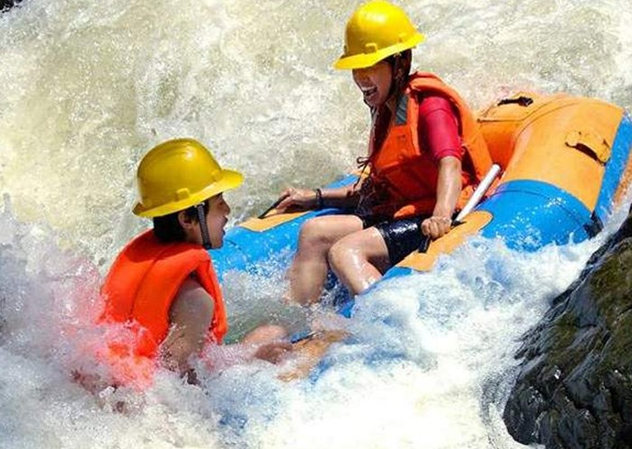 清遠筆架山峽谷漂流的一個特別之處是一年四季都可漂。原因是筆架山的漂流河建設有水源控制壩,它可以通過對水源的控制,保證山間突發洪時的漂流安全,并保證枯水季節漂流的適量水位。安全是漂流游人最關心的,筆架山的峽谷漂流在漂流全程的每一個驚險點,都安排有安全員守點,以幫助游人順利過灘。 筆架山峽谷漂流分兩段,上游是勇士漂,下游為逍遙漂,采用的漂流船都是2人橡皮艇。逍遙漂全長6公里,需時約2個小時,這段河道的狀態較為和緩,落差一般在1米以下,正常水深40-50公分,各種灘跌洄潭,均在大眾能夠接受的范圍內,適合各種年齡層次的人玩。不過,逍遙漂也有幾處險灘,都是有驚無險的。兩岸青山綠水,在逍遙中一邊享受愜意的漂流感覺,一邊自由自在地欣賞溪河美景,流連于碧水青山、綠蔭白瀑之間。玩逍遙漂只需穿帶救生衣。而參加勇士漂就驚險得多了。