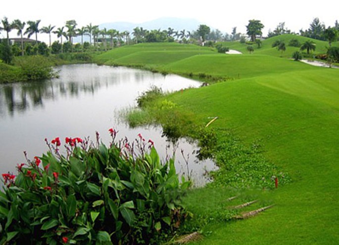 球場配備國際先進水平的配套設(shè)施,最先進的電腦系統(tǒng)以及排水設(shè)備,時刻保持最佳打球環(huán)境。球場延緩蘇格蘭古樸風(fēng)范,展開夢幻般絢麗場景:充水鄉(xiāng)韻味的球場內(nèi),一條全長1.5公里的海岸線;星羅棋布的人工湖,與小河交織成網(wǎng), 將球場雕塑成一塊塊開頭各異的"綠洲"。揮桿者乘船打球,乘船往來,成為高球場一大特色。飄逸起伏的球道或直向上,跌宕而下;或逼仄曲折,撲朔迷離;或?qū)掗熯b長,草天相接。