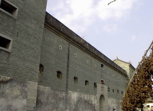 為了有效防御當(dāng)時(shí)猖獗的盜賊兵匪,圍樓的墻基砌得格外堅(jiān)固,一般厚0.6米,其中中圍樓主墻基厚達(dá)24-8.2米,全部用河卵石砌成,疊角放花崗巖石條。墻體上布滿(mǎn)了各種瞭望孔、射擊孔。各圍樓僅向外開(kāi)一扇大門(mén),門(mén)板用鐵皮包裹,并有鐵杠橫頂。若遇盜賊侵?jǐn)_,大門(mén)一關(guān),圍樓便成—座固若金湯的城堡。大門(mén)兩側(cè)或頂部設(shè)有水池,若遇敵人放火燒門(mén),只要打開(kāi)機(jī)關(guān),水池內(nèi)盛滿(mǎn)的水便會(huì)傾瀉而下滅火。