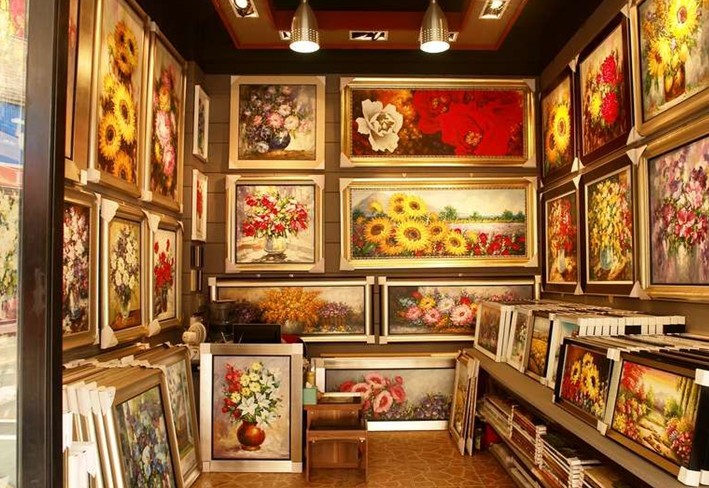 以油畫為主,國畫書法及其他工藝品為輔。版權所有山東聊城聊之旅國際旅行社有限公司,轉載必究!大芬油畫村除了油畫之外,還包含有其他藝術門類的經營,如國畫、書法、雕塑、刺繡、漆畫、景泰藍等等。在總體的776家門店中,從事油畫經營的有583家,從事國畫、書法創作和銷售的有53家,從事畫框、顏料等相關配套產品經營的有73家,從事工藝、雕刻、刺繡、裝飾、噴繪及書畫培訓的共有67家。