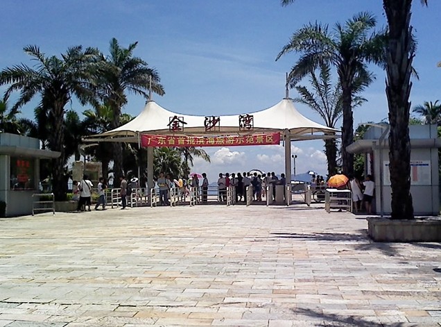 金沙灣海濱度假區位于深圳市東部海濱大鵬鎮,是深圳東部黃金海岸重要景點之一。這里背依溫柔環抱的群山,海域面積達25萬平方米,陸地面積15萬平方米,綠化面積高達80%,有綿延四公里沙質柔軟的沙灘,最為潔凈清澈的海水,金色的優質沙灘,沙灘生有萬種風情的松林。山光水色、林濤海韻、潛水征帆構成了一幅風光旖旎、風景迷人的海濱圖畫,完整的旅游配套設施,作為高品質的海濱休閑度假的首選。