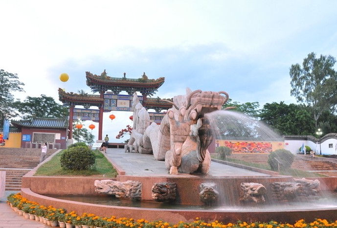 原龍崗鎮人民政府斥巨資,壘土萬斛,砌石千丈,雕梁畫棟,玉階朱廊,終于在椰風竹影中建成這傳奇的龍之家園。噴珠濺玉的石雕巨龍和泥金重彩的牌樓,在龍園大門組成第一道攝人心魄的風景線。園中美景目不暇接,雄渾壯觀的九龍透雕,峭拔古拙的建園碑和攤神柱。雍容典雅的五龍亭和琉璃牌坊,霞簇虹擁的回龍橋,巍峨莊嚴的龍王宮,佛語梵音的觀音閣,羅漢塔,長達五百米的東方巨龍為中心的龍文化廣場。河旁綠樹成蔭,橋下美人蕉似火,園中椰樹成蔭,芳草茵茵,亭閣走廊,悠揚古鐘,小巧桃園,蔥郁龍眼,一句話,美不勝收....每一處建筑,雕塑和園林,或氣勢磅礴,或構想奇妙,或獨具匠心,承傳著數千年龍文化對中國建筑、藝術、宗教、民俗的深遠影響。一登龍園氣勢恢弘的龍門,覽九龍壁,閱建園碑,游五龍亭,過回龍橋,穿如意洲,逛龍豐街,登羅漢塔,在梵音裊裊的觀音閣龍王宮焚香禮佛,可茗居品一壺烏龍茶,游泳場作一番蛟龍戲水,相思林歌一曲《龍的傳人》,或者去龍頭舞臺看俊男靚女演昨天的故事今天的傳奇。在龍園的花香綠意中,這時只覺一身凡塵盡洗,不經意間你就明白了:龍,對中國的建筑藝術、文化、宗教、民俗、政治的影響無處不在。