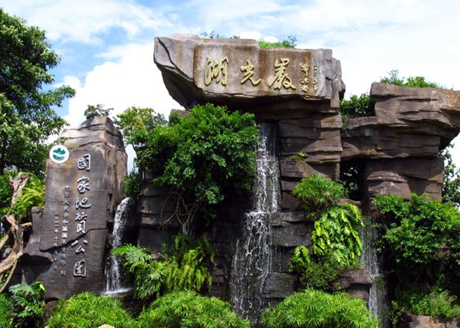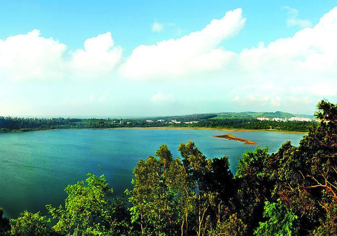 經(jīng)聯(lián)合國(guó)地質(zhì)勘探專家組鑒定,湖光巖是距今16至14萬(wàn)年間經(jīng)多次平地火山爆炸深陷而形成的瑪珥湖。湖面積2.3平方公里,湖深446米,其中火山泥沉積物400多米,水深20余米。湖和火山泥含有60多種微量元素,是世界罕見的“天然年鑒”和“自然博物館”。董必武同志曾用十個(gè)字對(duì)它作了概括:“四山環(huán)一湖,湖水明如鏡”。湖光巖的精粹是一汪蘭湛湛的、純凈得有如山泉的湖水。世界上僅有兩個(gè)瑪珥湖,湖光巖最早時(shí)稱"凈湖"或"鏡湖"。湖光巖的瑪珥湖比德國(guó)的瑪珥湖大,是世界上發(fā)現(xiàn)的最大瑪珥湖,且保存得非常自然,完整。湖中沒有螞蝗,沒有青蛙和蛇,卻有大量的魚蝦,甚至有巨大的神龜龍魚出沒。長(zhǎng)年累月不管落葉塵埃如何侵染湖面,5個(gè)小時(shí)后湖水自有神奇的自我凈化功能,把雜物消得無(wú)影無(wú)蹤,湖水清澈,明凈如鏡,湖光巖其美麗的不解之謎一直是大自然中的謎團(tuán),吸引著中外科學(xué)家考察探研。2004年10月,世界上最為典型的兩個(gè)瑪珥湖----湖光巖瑪珥湖與德國(guó)艾菲爾地區(qū)瑪珥湖簽署了“中德姐妹瑪珥湖合作協(xié)議書”,結(jié)拜為“姐妹湖”。湖光巖大小共有50多處千姿百態(tài),風(fēng)景優(yōu)美的景點(diǎn),版權(quán)所有山東聊城聊之旅國(guó)際旅行社有限公司,轉(zhuǎn)載必究!被譽(yù)為“天然氧吧”。它也是國(guó)家劃水訓(xùn)練基地,曾舉辦過(guò)2004年世界滑水錦標(biāo)賽。