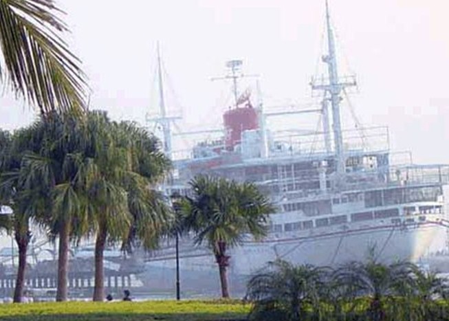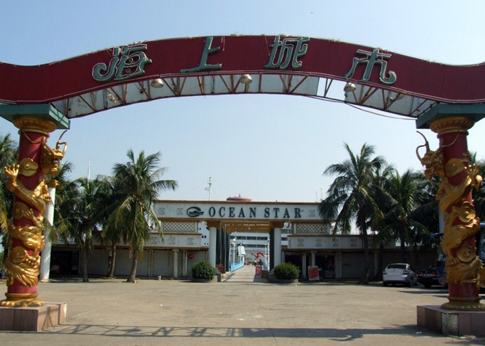“海上城市”原名“巴西瑪魯”,是日本一艘國際遠(yuǎn)航客貨輪,已有四五十年的歷史,船長 156米、寬19.6米,共有七層,排水量達(dá)1.7萬噸。1954年下水,1951年載中日友好青年代表團(tuán)訪問中國,后改為旅游船,停泊在日本旅游勝地鳥羽市港灣,1997年由珠海華瑩集團(tuán)引進(jìn),次年落戶于湛江,與雄偉的南海艦隊軍港隔海相望。