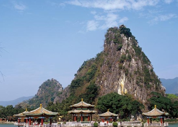 位于廣東四會市城區的西南面3公里處,山高649米,風景區內林木蔥蘢,山清谷幽;清泉瀑布,云蒸霧蔚,有如人間仙景。