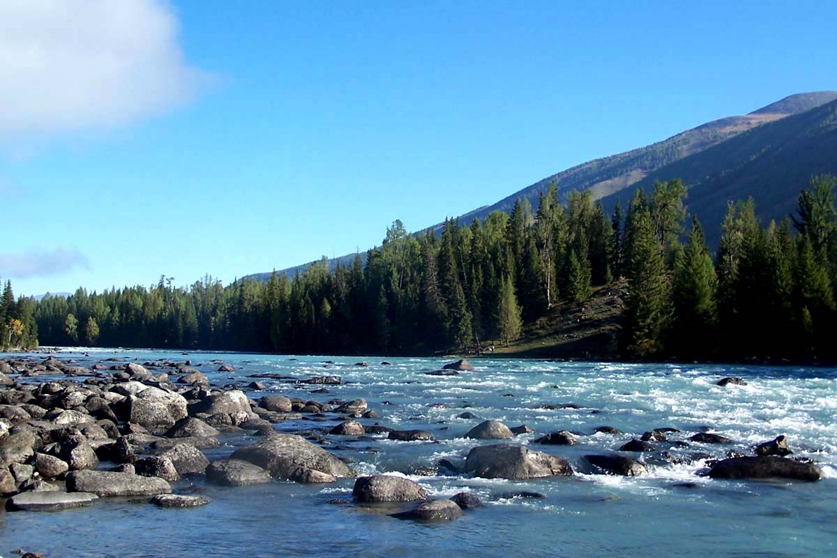游天池可從烏魯木齊乘汽車前往,上山時山路蜿蜒曲折,伴隨一條奔騰的溪流,這是來自天池的水,清澈的溪水沖擊巖石時激起雪白的浪花,使人感到一股清新氣息。
