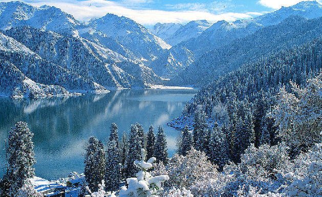 中國新疆維吾爾自治區(qū)著名湖泊。在烏魯木齊東北100公里,博格達(dá)峰北坡山腰。湖面海拔1910米,南北長3.5公里,東西寬0.8~1.5公里,最深處103米。湖濱云杉環(huán)繞,雪峰輝映,非常壯觀,為著名避暑和旅游地。天池成因有古冰蝕-終磧堰塞湖和山崩、滑坡堰塞湖兩說。由天池流出的三工河為山麓阜康縣農(nóng)牧業(yè)主要灌溉水源。天山天池風(fēng)景區(qū)以高山湖泊為中心,雪峰倒映,云杉環(huán)擁,碧水似鏡,風(fēng)光如畫。
