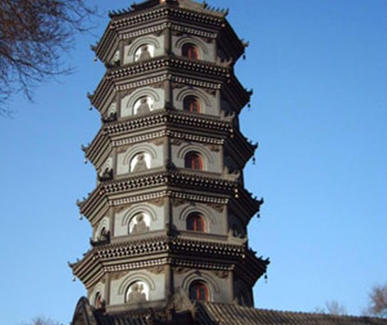 “浮屠”作為佛教徒膜拜的紀(jì)念物傳入中國,它的形狀很快被融化、改造。早在漢朝這種形象就已有了原型,既多層樓閣,這種中國固有的樓閣與印度傳入的“浮屠”相結(jié)合,便產(chǎn)生了中國形式的佛塔。多層樓閣在下,樓閣頂上置放“浮屠”形式的屋頂,稱為剎頂。于是,一種新的建筑樣式出現(xiàn)了。佛塔作為安放佛骨舍利的紀(jì)念物,起初是建立在寺院的中心位置,供佛徒頂禮膜拜。隨著佛像的出現(xiàn),供奉佛像的大殿逐漸替代了塔的中心位置。以后寺廟的建筑,佛塔被移至大殿之后,或者放在大殿中軸邊的院落里。塔形體高大,具有宣揚和招徠的作用,因此,它成為佛教建筑中必不可少的標(biāo)志性建筑。
