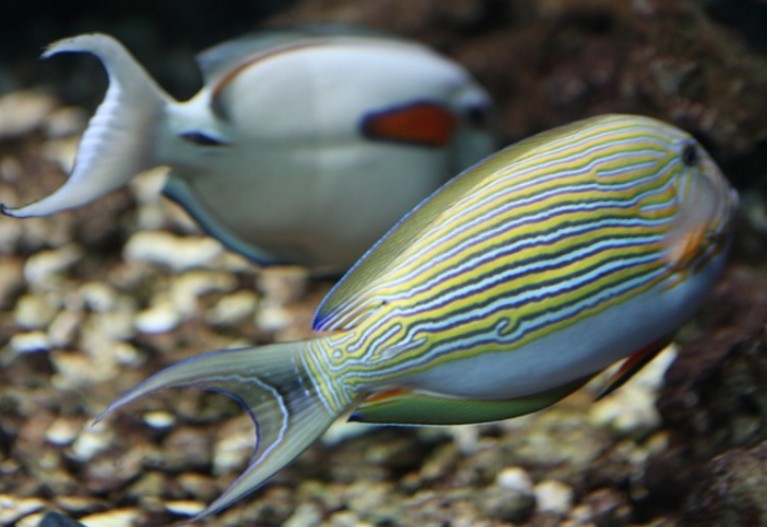 特點三:鯊魚、海龜等6000多條魚類盡收眼底。海洋世界設有現代化的水族展柜,游客能邊走邊欣賞千姿百態的魚群,碩大無比的海龜及兇猛的鯊魚。隨著庭廊徐徐而下,游客可步入到地下海洋生物觀賞區,即主水族館,長龍般的亞克力玻璃隧道盤繞于巨型的展館內,被海水包圍。水族館內將容納約百種、6000多條海洋魚類,包括鯊魚、海鰻、水母、大海龜等珍貴品種。同時還將有刺激的喂魚表演,讓游客享受完全置身海底之感。