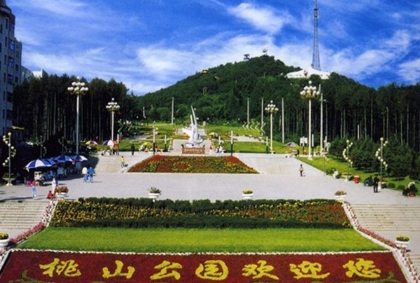 桃山公園位于七臺河市桃山區(qū)中心地段,始建于一九八五年,占地面積 39公頃,除甬路和建筑外,幾乎全部被草坪、花壇和樹木所覆蓋。全園共栽植花草6500余株,人工草坪24000平方米,還有杜松、垂柳、柏樹、樟子松、蒙古櫟、榛子、柳樹、楊樹,遠遠望去,郁郁蔥蔥,繁花似錦,鶯歌燕舞。 桃山公園依山而建,氣勢磅礴。獨具匠心的設(shè)計與天然景觀渾然一體,備受游客稱贊。