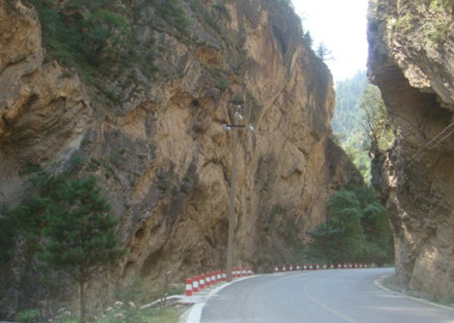天險臘子口位于迭部縣東北部的臘子鄉(xiāng)政府駐地北7 公里處的深山峽谷之中,東西有陡峭的石崖相對峙,中為一條長約30多米、寬8 米,高達100 米以上的隘口,崖壁下是水流湍急的臘子河,河上只有一座小木橋,與東側(cè)崖壁下的棧道相通,抬頭只見青天一線,地形十分險峻,堪稱“一夫當(dāng)關(guān),萬夫莫開”。天險臘子口”是舉世聞名的臘子口戰(zhàn)役紀念地。