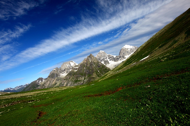 由于受西伯利亞冷濕氣流影響,這周圍降水豐沛,森林密布,牧草繁茂,景色迷人。友誼峰的西南坡分布有大面積的冰川。它是喀納斯河的源頭,也是阿爾泰山最大的冰川。版權所有聊城聊之旅國際旅行社有限公司,轉載必究!友誼冰川是我國海拔最低的山谷冰川,在國內外享有極高聲譽。氣勢磅礴的友誼峰冰川受外界作用,形成了獨特的地貌形態,大小不等的冰裂縫遍布友誼峰冰川,堪稱世界奇觀。由于友誼峰冰川所處的緯度偏北,具有較好的代表性,是科學考察研究及旅游探險的最佳基地,在這里一天可以感受到四季的變化。