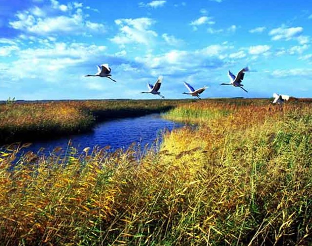 扎龍國家級自然保護區位于黑龍江省西部烏裕爾河下游齊齊哈爾市及富裕、林甸、杜蒙、泰來縣交界地域,地理坐標為東經123°47′~124°37′,北緯46°52′~47°32′,屬濕地生態系統類型的自然保護區。保護區南北長65km,東西寬37km,總面積21萬公頃,其中核心區7萬公頃,緩沖區6.7萬公頃,實驗區7.3萬公頃。保護區由烏裕爾河下游流域一大片永久性季節性淡水沼澤地和無數小型淺水湖泊組成,濕地的周圍是草地、農田和人工魚塘,主要保護對象為丹頂鶴等珍禽及濕地生態系統,是中國北方同緯度地區中保留最完整、最原始、最開闊的濕地生態系統。每年共有6種鶴類在此繁殖和停歇,占世界鶴類種類的40%,保護區河道縱橫,湖泊沼澤星羅棋布,濕地生態保持良好。