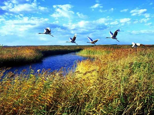 扎龍國家級自然保護區位于黑龍江省齊齊哈爾市境內(部分地區位于大慶市杜爾伯特蒙古族自治縣和林甸縣境內),面積21萬公頃,1979年建立省級自然保護區,1987年晉升為國家級,1992年被列入“世界重要濕地名錄”,主要保護對象為丹頂鶴等珍禽及濕地生態系統。總面積2100.00平方公里。扎龍自然保護區是全國較大的丹頂鶴等大型水禽和濕地生態類型自然保護區。烏裕爾河在這里地區處于閭尾狀態,河水漫溢,形成廣闊的以生長蘆葦為主的沼澤地帶。保護區內湖泊泡澤星羅棋布,水生、濕生植物廣泛分布,浮游生物、水棲昆蟲、軟體動物和蛙類、魚類大量繁殖,水禽的食物來源十分豐富。每年4月到6月為水禽繁殖期,這是親鳥采食時間長,有利于雛鳥的物質能量積累和發育生長。由于水面廣闊,沼澤淤泥軟陷,不利于漁獵生產和獸類活動,成為水禽的天然保護地和生活樂園。原始的自然景觀、完整的濕地生態系統,是丹頂鶴等大型水禽的棲息繁衍的優越場所。扎龍自然保護區以水禽為主的鳥類共有150多種,尤以鶴類種類多、密度大而著稱于世,素有“鶴的故鄉”之稱。世界上鶴類有15種,中國有9種,在扎龍自然保護區生活的就有6種,即丹頂鶴、白枕鶴、蓑羽鶴、白頭鶴(繁殖鳥)、白鶴、灰鶴(旅鳥)。加上引進人工飼養的灰冠鶴、沙丘鶴、澳洲鶴、吐綬鶴、藍鶴、黑冠鶴,鶴類已達12種,是世界上鶴類種類最多,數量最大的自然保護區。其他珍貴西游的水禽還有白鸛、黑鸛、大天鵝、小天鵝、鴛鴦、大白鷺等國家一、二、三類保護鳥類15種。其中一丹頂鶴最為著名。