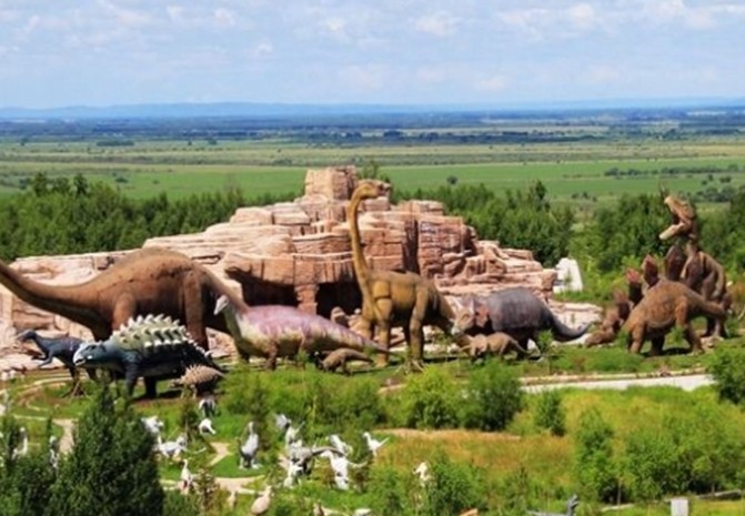 黑龍江嘉蔭神州恐龍博物館坐落在中俄大界河黑龍江右岸,距嘉蔭縣城西12公里。博物館占地面積13萬平方米,建筑面積4650平方米,展廳面積2100平方米,是一座將自然科學和人文景觀緊密結合的大型綜合博物館。館內陳列著由鴨嘴龍、霸王龍、疾走龍、甲龍的骨骼化石組裝成的8具恐龍化石骨架。版權所有山東聊城聊之旅國際旅行社有限公司,轉載必究!這是我國自四川自貢、云南祿豐、江蘇常州、內蒙古二連浩特恐龍博物館后又一座大型恐龍博物館。
