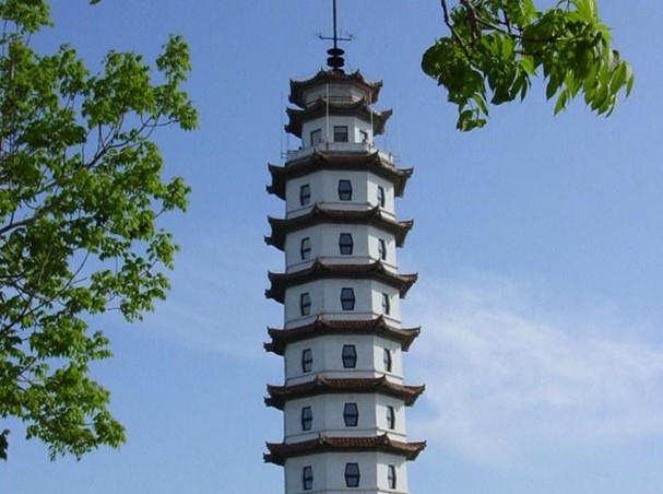 建于1983年9月,位于伊春市區南海拔653.1米的高山頂上,仿古式寶塔建筑,塔身為白色,塔高67米,共11層。四周峰巒起伏,莽莽林海之中,登上塔的頂層,新興林城伊春盡收眼底,一望無際,塔的周圍辟建具有特色的森林公園。