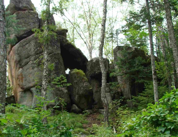 位于距市區(qū)7公里處。在一片密林中,有一簇平地拔地而起,以一塊塊花崗巖巨石砌成的石峰,高大雄偉,其形似柱,稱謂石林。石林由六座石峰組成,南二北四。北面四座一字梯形排列,一高近丈,二高近二丈,三高平二丈,四高一丈半。二峰端長有蒼松一株,似示最高。各峰成形惟妙,二三座石峰間相距極狹,僅尺許,縫如刀切,稱“一線天”。在第四座石峰南5米處,還有兩座石峰,相距不足1米,微低。遠望,形如雄師臥地,前身支起而后身匍匐,似忠誠的護林衛(wèi)士。第二叢樹林,在第一叢以東偏南,相距約百米。由三座石峰構成,北二南一。北西兩座甚是匹配,高九仞余,其中一座有三個峰端,有護林人“家業(yè)興旺”之寓。沿三峰石南側攀緣而上,至高6米處,鉆過兩塊大石堆成的石門,便到了石峰東側的平臺,臺成弧狀,可納十余人。臺下是陡峭絕壁,其險令人目眩。臺之對面,有一塊呈圓鼓狀、低于平臺1米之大石,可容四人并坐,版權所有山東聊城聊之旅國際旅行社有限公司,轉載必究!其底部與三峰石相連,有狹道與平臺相通。登石眺望,可觀得西南方向約20米處的丈余高之石峰,似一擎天巨柱……石林,仿佛小興安嶺建設者之雄資,在廣袤密林中,手捧奇花異草,伴著山間小溪流水淙淙,迎候著遠方的客人。