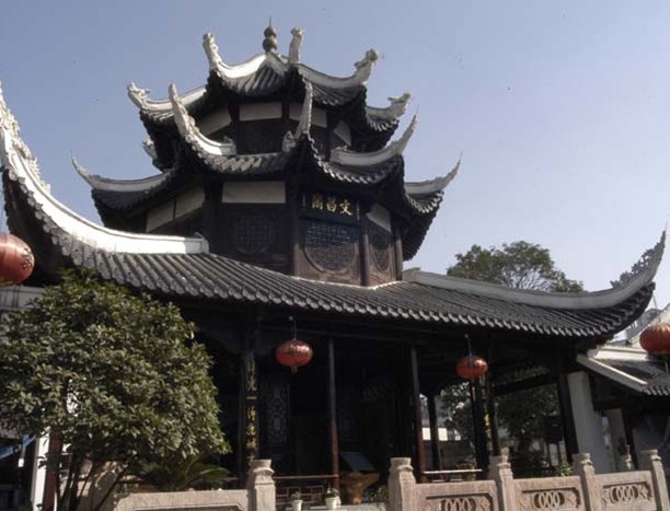 文昌閣,位于貴陽城區東隅,始建于明萬歷三十七年(1609年),占地1200平方米,以設計巧妙、結構獨特而著名,是省級重點文物保護單位。道教廟宇。在貴州省貴陽市東門月城上。始建于明代萬歷三十七年 1609),清代康熙八年(1669)重修,雍正、乾隆、嘉慶、道光時均有維修和擴建。該閣是一座九角三層寶塔形建筑,兩邊設有配殿,前為聯結配殿的齋房,平面布局成四合院形。