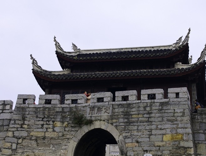 青巖鎮,是明清時期的一座古鎮,距貴陽約60華里。它地近苗鄉,以前曾是軍事重鎮,用以鎮壓苗民起義;它又曾是遠到川、湘、滇、桂的通衢,往來的商賈都要由此經過。于是,軍事和經濟的雙重需要,成就了這座古鎮。如今,它早已失去了軍事價值,所謂城墻也不過是一段斷壁殘垣而已。然而,看著那起伏的山勢,仍能想像出它當年那蜿蜒的身姿。城樓后面,當街而立的是一座石牌坊,是光緒皇帝賜給當地一位狀元的,距今已有一百多年的歷史了。但它還不算是“古董”,因為沿街的民居有的還是明代建筑。