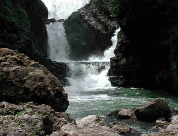 天下第一大神龕--香火巖神龕,位于景區(qū)中部半邊山下,寬約500多米,高約100多米的懸崖峭壁之上,龕內(nèi)隱約可見(jiàn)一座佛,高大雄偉,似人工實(shí)乃天成,迎面石峰矗立,若石人遙拜,渾然一體,妙不可言。香火巖大瀑布,位于神龕與石人之間,河水至此變窄、變陡,驟然間突現(xiàn)八級(jí)瀑布。總落差約250米,寬40米,樹(shù)林掩映、水霧縈繞、彩虹隱現(xiàn)、蔚為壯觀。沿觀瀑亭拾階而上,山路蜿蜒,奇樹(shù)夾道,藤繞枝連,綠葉蔽日,行約800米,忽見(jiàn)一景--滴水潭,滴水似鳴琴,深潭似臥龍,予人曲徑通幽之感。順小道前行,曲折似若無(wú)路,再行驟然現(xiàn)一大洞,謂之曰:"吐云洞",洞口云霧縈繞,洞內(nèi)怪石嶙峋,鐘乳倒掛,暗河密布,水流湍急,聲若雷鳴。洞內(nèi)絕壁棧道,游人至此無(wú)不感嘆大自然之鬼斧神工及建道者的艱辛。二洞天生橋,雄奇無(wú)比,人稱(chēng)"黔中第一天生橋",橋?qū)捈s300米,高約50米,跨度約40米,橋頂中央巧開(kāi)一"天窗",陽(yáng)光飛瀉、滴水飄雪,觸手可及,人間仙境莫過(guò)于此。香火巖之紅楓林、紅霞巖、水簾靈芝巖、金雞湖等等之勝景在此不一一敷述,游人至此自可感悟一番......
