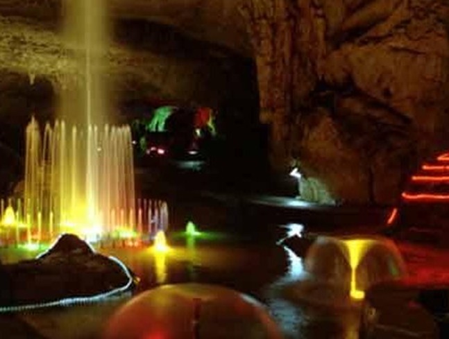牟珠洞 亦名憑虛洞,位于清定橋村,距貴定縣城13公里,僅次于盤江到貴定公路右側(cè)的古驛道邊,。明清以來(lái),洞為名洞,寺為名剎。洞前有雷鳴洞,洞麓有飛瀑,瀑布下有一潭,泉水清澈,游魚(yú)可數(shù)。潭邊樹(shù)木蔥蘢,是避暑佳境;洞千余米,洞內(nèi)有2丈多高的石柱一根,洞內(nèi)的鐘乳石,狀如游龍臥虎,走象啼猿,或肖似“八仙過(guò)江”、“合和二仙”,或云吳三桂擬將洞內(nèi)石術(shù)鋸倒搬往云南,因雷擊而止,今“鋸痕”猶存。
