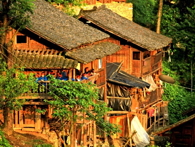榕江縣侗家村寨大多坐落在古樹參天,風(fēng)光秀麗,竹林掩映,依山傍水的地方。房屋多為二層或三層不等的木質(zhì)結(jié)構(gòu)吊腳樓,吊腳樓一般依山勢開辟成兩層地基,下層屋基柱腳須用筒柱支撐,有的因偏廈建在地基之外的村巷上或魚塘上而無支柱造成木樓空懸,吊腳樓因此而得名。七十二寨的房子,每幢樓一般分兩間或三間,也有五間或七間的。除了正屋外,兩側(cè)還設(shè)有寬約丈許,與正屋進深等長的偏廈,上樓的樓梯多架于正屋右側(cè)的偏廈上,二樓前邊是一道由東直通往西的長長走廊,廊沿外及整個房子四周先裝木板后于裝板外鑲嵌雕花格子,這就是我們通常所說的雕房。走廊里外分別擺放有幾根寬約尺許,長達丈余的杉或松木板凳供客人休息用。七十二寨侗族的火堂一般設(shè)在堂屋里間或兩側(cè)房間內(nèi),火堂分“平燒火堂”和“高燒火堂”兩種。樓下主要用來關(guān)養(yǎng)牲畜,樓上住人,存放糧食,天樓堆放生活、農(nóng)用雜物等。平燒火堂的表層齊樓板表面,裝滿黃泥巴的撻斗形狀的火堂斗高約一尺,長寬約1米見方,懸于樓板下邊;高燒火堂的泥斗置于樓板之上,火堂表面高于樓板尺許,左右及內(nèi)側(cè)再鋪一層樓板,形成上下兩層,就表上層連火堂形成長約一丈,寬約六尺的長方形樓臺,臺下的樓板僅余常約一丈,版權(quán)所有山東聊城聊之旅國際旅行社有限公司,轉(zhuǎn)載必究!寬4尺的狹長形,與火堂表面形成兩層,這就是獨具特色的七十二寨侗族“火鋪臺”。“火鋪臺”主要用于炊事和烤火,其下面一般是用來存放紅苕、洋芋等物。這就是七十二寨侗家人房屋建筑的特點。