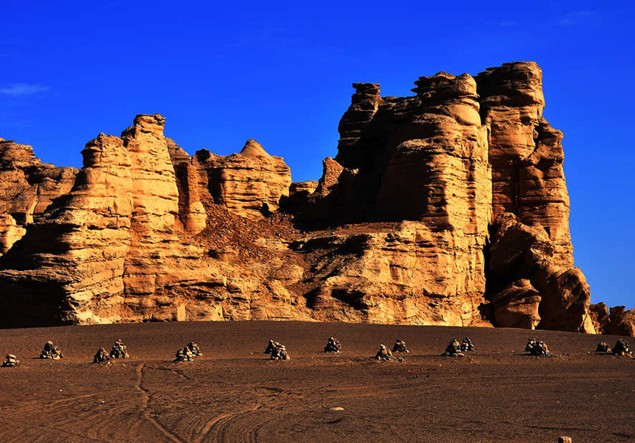 魔鬼城位于哈密市五堡鄉(xiāng)以南,距五堡鄉(xiāng)20Km,距哈密市約100Km,由于它神秘莫測,不熟悉地形的人若遇風(fēng)暴,有迷失方向的危險(xiǎn),哈密雅丹地貌東起煙墩外的駱駝峰,經(jīng)雅滿蘇鐵礦,大南湖煤礦,到五堡沙爾湖十三間房等長約400公里,寬約5-10公里,在哈密屬于特殊的地理環(huán)境,它是經(jīng)過漫長的風(fēng)蝕自然而形成的。在魔鬼城可以看到那些酷似城堡、殿堂、佛塔、碑、人物、禽獸形態(tài)各異的景觀、令人眼花繚亂的陡壁懸崖、以及混跡巖礫中五光十色的瑪瑙、隨處可見的硅化木、枝葉清新的植物化石,偶爾可獲得象恐龍蛋化石的小圓石頭,海生的魚類化石、鳥類化石,當(dāng)夜幕降臨時有時會聽到鬼哭狼嚎令人發(fā)指的嘶叫,因此才被人們稱之為“魔鬼城”。 版權(quán)所有山東聊城聊之旅國際旅行社有限公司,轉(zhuǎn)載必究!其實(shí)這里還真正存在著古城堡建筑、古民房遺址―艾斯克霞爾古城堡:離地面約六米的風(fēng)蝕臺上的長方形的土夯建筑有高約五米,前面有門有窗的居住地,這就是人類活動之地、是古絲路的驛站或是哈密王朝的西南前哨,據(jù)當(dāng)?shù)厝送茰y,此地西面的沙爾湖(由流沙通向羅布泊)干涸之前,這里也有村莊人家,當(dāng)水源游移(地殼變化)沙爾湖消失后,林木飛鳥在風(fēng)沙中,部分變?yōu)榛说鼐幼〉娜酥坏帽尘x鄉(xiāng),連先祖的遺骨也移走了、至今僅有遺址。哈密魔鬼城已是國家AAA級景區(qū)。