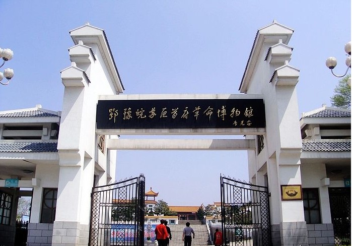 鄂豫皖蘇區首府革命博物館是河南省規模最大的縣級革命博物館,坐落在新縣秀麗的山城東南,依山傍水,仿古式現代建筑,主體為徽式風格,紅檐橙瓦,金碧輝煌。