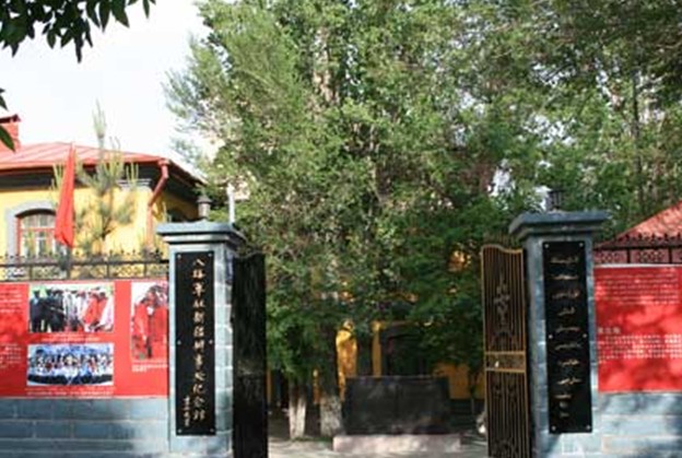 在烏魯木齊市勝利路二巷,版權所有山東聊城聊之旅國際旅行社有限公司,轉載必究!坐落著一幢兩層樓的小洋房。周圍綠樹掩映,花團緊簇;院內綠草如茵,潔凈如洗。大門外一側掛著一塊銅制牌子,上面鐫刻著1974年董必武親筆題寫的“八路軍駐新疆辦事處原址”11個大字。該建筑為一幢中西合璧,青磚砌腰壓檐,土木結構的二層黃色樓房。樓頂南側有一座涼亭。登上涼亭,可以鳥瞰市區風光。院內聳立著數十棵參天白楊和四季長青的松柏。每年春季,迎春最早的杏花,點綴著滿院春色;夏秋季節,園中的各色鮮花,爭妍奪目。紀念館為自治區級重點文物保護單位。