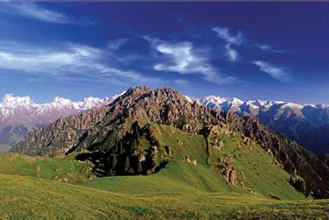馬牙山位于天池西南,距天池約3公里,深藏于博格達(dá)蜂的山巒中,西臨瑤庫爾,北連燈桿山。山休長約5公里,峰高海拔3056米。背靠皚皚雪峰,面向粼粼冰池。在這里游覽觀賞,即可盡得奇峰異石之妙,也可探窺大自然的神秘。馬牙山頂,尖石林立,遠(yuǎn)看好像一排排巨大的馬齒,故名。馬牙山斷崖崔嵬,石峰林立;遠(yuǎn)望猶如一排馬牙,仰視宛若萬笏朝天;亂石爭奇,疊巖競秀,令人目眩神迷。馬牙山這種景觀是巖石風(fēng)化作用造成的。哈薩克人把馬牙山稱為“瑪依阿散”,意思是酥油之山。馬牙山頂比較平坦,是一片肥美的草原,夏季長滿了酥油草,盛開著各色鮮花。站在這里環(huán)顧四揍走運(yùn)四周,北面的天池風(fēng)光盡收眼底,東面的博格達(dá)峰和南面的雪山云霧似乎近在咫尺,而西面烏魯木齊的舍田邊也歷歷在目。