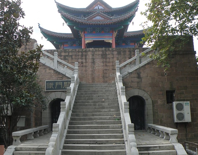 “鐵門關”有兩處:庫爾勒鐵門關和武漢鐵門關。庫爾勒鐵門關位于庫爾勒市北郊8公里處,扼孔雀河上游陡峭峽谷的出口,曾是南北疆交通的天險要沖,古代“絲綢之路”中道咽喉。晉代在這里設關,因其險固,故稱"鐵門關",列為中國古代二十六名關之一。謝彬《新疆游記》中有"兩山夾峙,一線中通,路倚奇石,側臨深澗,水流澎湃,日夜有聲,彎環曲折,時有大風,行者心戒"的記述。《水經注》中稱鐵門關所在的峽谷為"鐵門關",后人叫它"遮留谷"。鐵門關自古以來就是兵家必爭之地,關旁絕壁上還留有"襟山帶河"4個隸書大字。如今關旁山坡上還留有古代屯兵的遺址。西漢張騫銜命出使西域曾路經鐵門關,班超也曾飲馬于孔雀河,故而人們又稱孔雀河為飲馬河"。唐代邊塞詩人岑參登鐵門關曾賦詩一首:"鐵關天西涯,極目少行客,關旁一小吏,終日對石壁,橋跨千仞危,路盤兩崖窄。試登西樓望,一望頭欲白"。這首詩,真實而生動的描繪出了鐵門關的險峻,前涼楊宣部將張植進屯鐵門關,擊敗焉耆王龍熙于遮留谷。