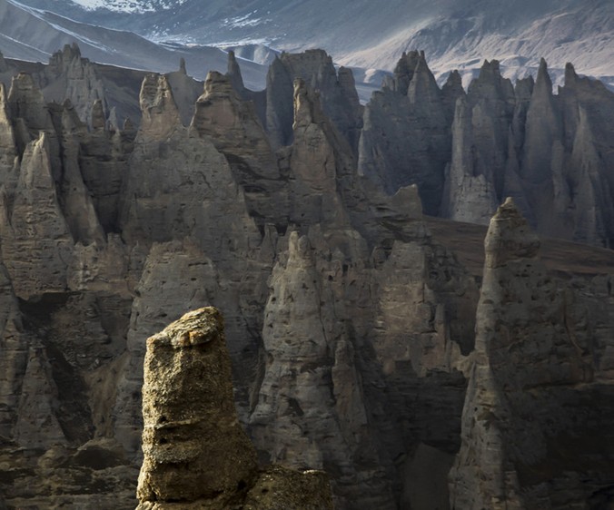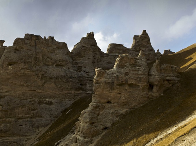 天山石林又稱奎克烏蘇石林,因位于天山山脈西段、那拉提山北麓的奎克烏蘇達坂之下而得名,長9000米、寬約5000米,相對高度30米,大自然的鬼斧神工,把石林雕刻得奇形怪態(tài),千姿百態(tài)。從巴音布魯克草原向西南行走100公里,登上科克烏蘇達坂頂端,放眼望去,在雪峰環(huán)抱中,好象有一片原始森林散落在一條深谷兩面的山坡上,走近一看,原來不是松柏,而是一片亭亭玉立的“石林”。經(jīng)過大自然幾百萬年的洗禮,這沙巖石林被雕塑的千姿百態(tài)、光怪陸離。有的宛如座座古堡,有的仿佛行人走獸,栩栩如生;有的象刀槍劍戟,直插藍天,其間還布滿了大窟小洞,通幽曲徑。石林地處天山深處,交通不便,反倒成了天然野生動植物的保護圈。