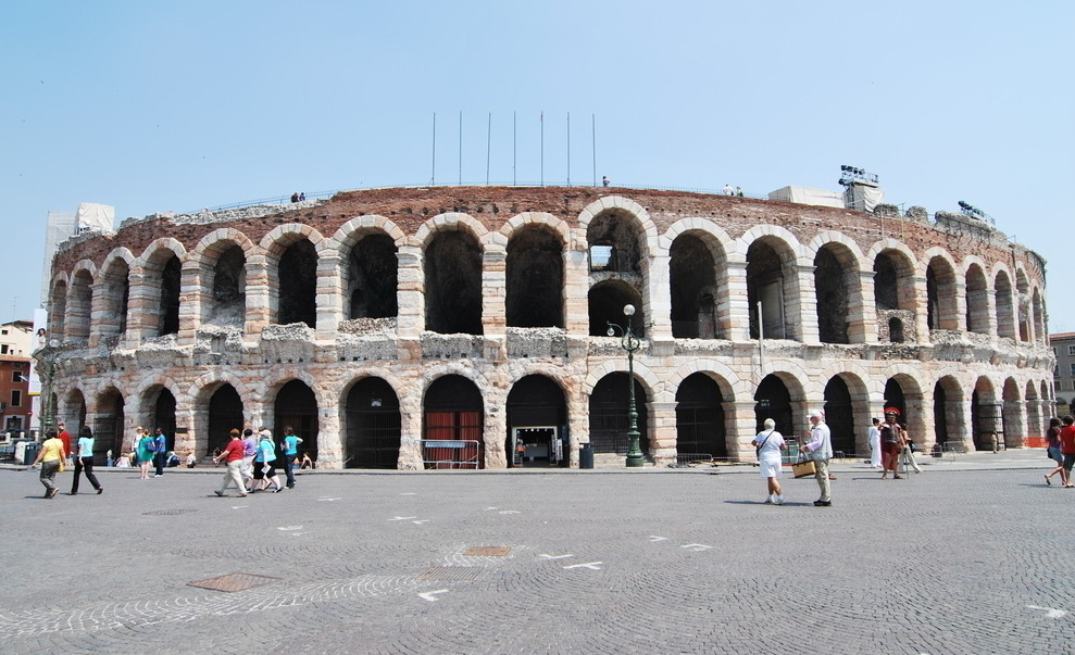 夏天的意大利到處回蕩著歌劇美聲。每年的維洛納歌劇節(jié),讓全球歌劇迷趨之若鶩,不辭千里來(lái)到維洛納,因?yàn)檫@里是每年全世界最重要的歌劇演出重鎮(zhèn),主要的觀光活動(dòng)是在圓形競(jìng)技場(chǎng)(Arena)舉行的戶外歌劇。