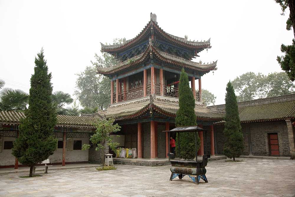鳩摩羅什圓寂后火化,據說薪滅形碎,唯舌不燼。其弟子收其舍利,建造舍利塔以紀念之。這就是至今保存完好的“姚秦三藏法師塢摩羅什舍利塔”。舍利塔北邊竹林深處,掩藏著遠近聞名的“煙霧井”。舍利塔亭西側,樹立著元代所刻“逍遙園大草堂棲禪寺宗派圖”碑,