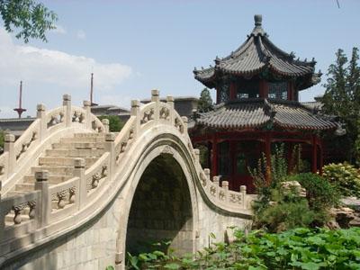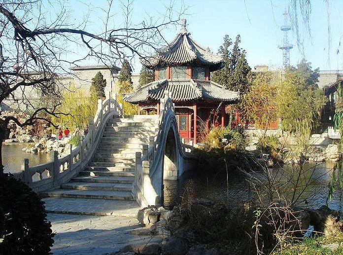 古蓮花池古蓮花池,地處保定市內南市區,正門坐南朝北。總面積為2.4萬平方米,其中池水面積7900平方米。池水以中心島為界分為南北兩塘,蜿蜒曲折的東西二渠將兩塘溝通一體。南塘呈半月形,外圍峭壁環峙,松柏滴翠。北塘呈不規則矩形,四周玉石堆岸,楊柳垂絲。原為張柔居所。