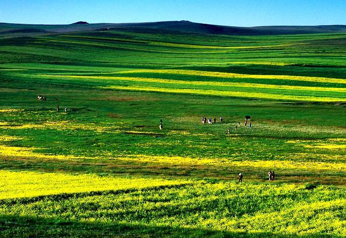 輝騰錫勒草原距呼和浩特東北150公里。蒙語意為寒冷的高原。這里海拔1800多米,在東約18公里的地方,有九十九個天然湖泊,鑲嵌在綠草如蔭的草原上。這里是避暑的好地方,游人在這里可以體驗“早穿皮襖,午穿紗,晚上圍著篝火吃西瓜”。