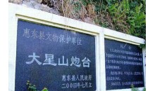 大星山炮臺(tái)位于港口鎮(zhèn)最南端的大星山西南面,是平海諸炮臺(tái)中保存得相當(dāng)完好的炮臺(tái)。東、西、南三面臨海,地勢險(xiǎn)要,易守難攻,是歷代兵家必爭之地。鴉片戰(zhàn)爭前夕,帝國主義列強(qiáng)不斷派兵侵略中國,為抵御外來侵略,清康熙五十六年(1718年),廣東、廣西地方軍務(wù)兼理糧餉兵部右侍郎兼都察院右副都等捐銀在此建造炮臺(tái),筑成軍事要塞。炮臺(tái)用麻石砌筑,周長295米,平均高3.5米,寬2.55米。